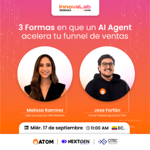 Nuestros socios de @nextgenec, junto a @atom_chat te invitan a un webinar imperdible donde descubrir谩s c贸mo los agentes de IA est谩n revolucionando la forma de vender.