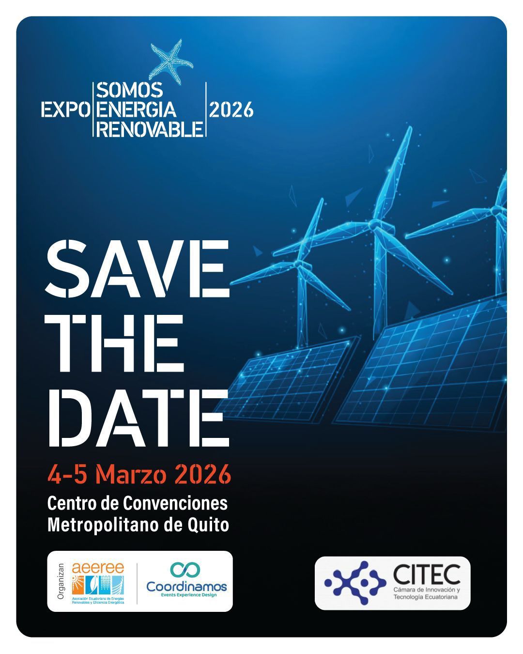La Asociación Ecuatoriana de Energías Renovables y Eficiencia Energética (AEEREE), junto a Coordinamos, organizan EXPOENERGÍA 2026 y el Energy Summit Ecuador, el punto de encuentro estratégico para líderes, autoridades y […]